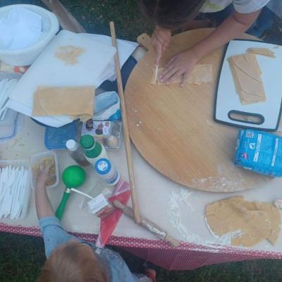 Τα παιδιά γνωρίζουν τα ζυμαρικά και μαθαίνουν για τη μεγάλη ποικιλία τους . Στη συνέχεια φορούν ποδιές και σκουφάκια (εξηγούμε τους κανόνες υγιεινής για την παρασκευή των τροφίμων), βλέπουν τις ποσότητες των υλικών και φτιάχνουν ζύμη η οποία θα ανοιχτεί σε φύλλα με την βοήθεια των παιδιών και θα κατασκευάσουν διάφορα ζυμαρικά όπως οι χυλοπίτες , τα λαζάνια, το κριθαρακι και άλλα.